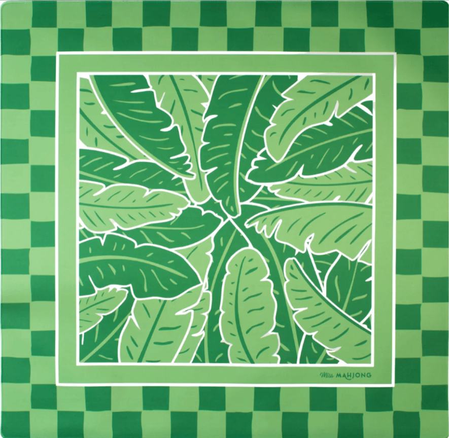For those whose taste runs toward the established brands, Miss Mahjong’s Canopy Mat deserves your attention this week. A tropical love letter in natural rubber, not neoprene, featuring a lush canopy of banana leaves inspired by the iconic Martinique print. It is the kind of mat that turns a card table into a destination. Or, pair the Miss Cowgirl tile set and the Lasso Mat for something bolder, something with a bit of Western grit underneath the polish. Find them at missmahjong.com.